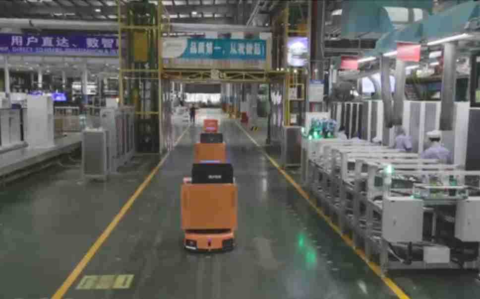 为车载冰箱物流配送打造的智能解决方案,,,包含产中物流通过潜伏举升AMR搬运至线边,,产后成品物流智能仓储,,流程包含产中物流智能齐套入库,,,线边安灯叫料AMR智能配送至线边,,,,成品入库、、、、出库,,,,通过无人堆高车机器人,,,智能仓储管理替代人工作业管理,,实现更高存储、、、更高效率、、、、更具柔性化的解决方案。。